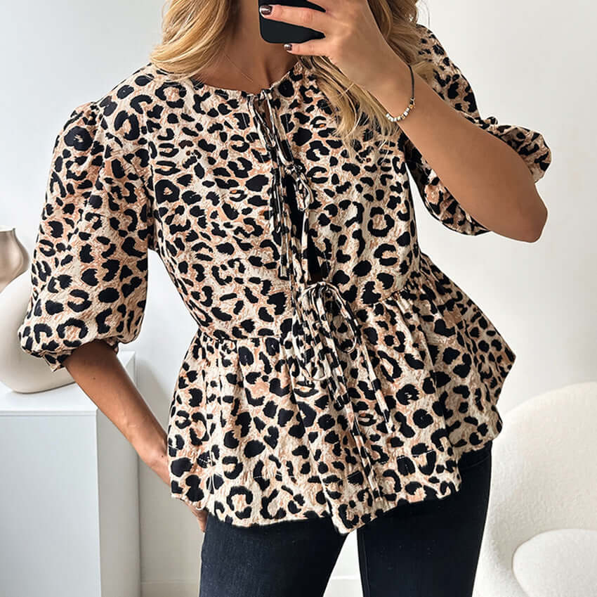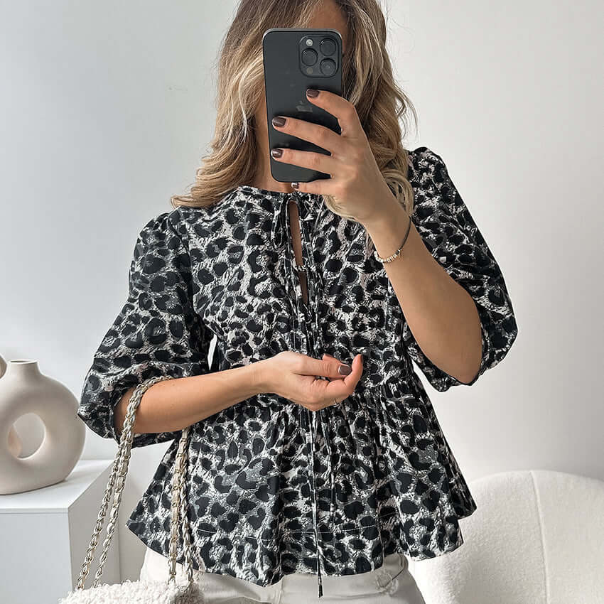 Women's Design Lace-up Bubble Sleeve Printed Blouse in 2025